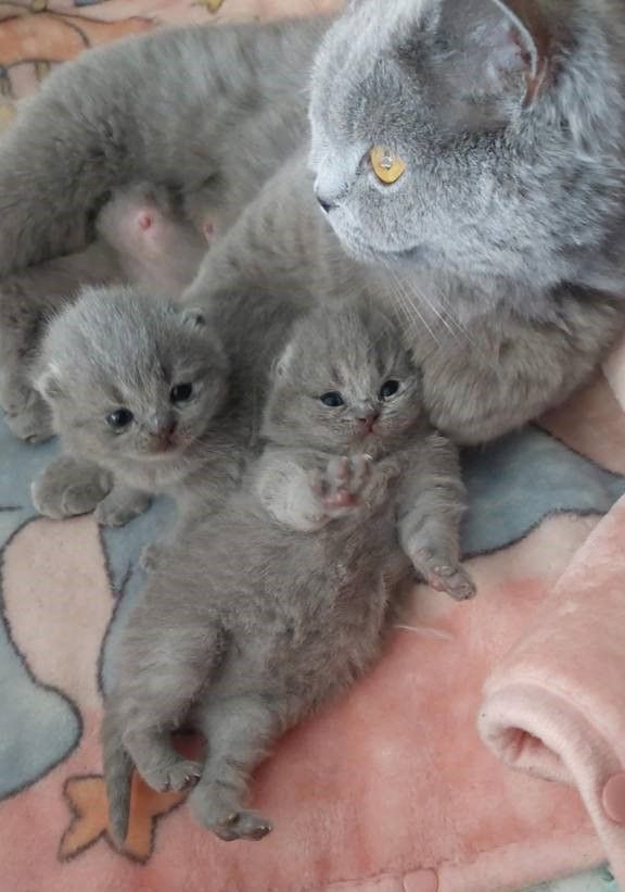 3 chatons sont nés le 7 avril 2025 . Il y a 1 mâle bleu , 1 femelle bleue et 1 mâle fawn . UTHA étant porteuse du longhair , les 2 longueurs de poils sont possibles. Pour compagnie, ils seront à 1500€ dont 500€ d’arrhes pour finaliser la réservation.